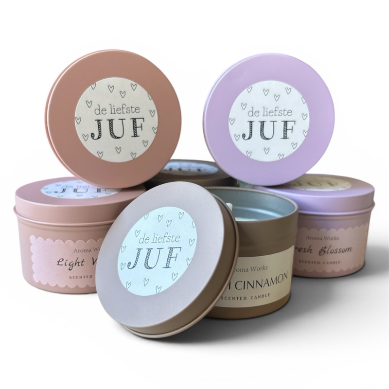 Geurkaars in blik | Liefste jufGeef de liefste juf een warme cadeautje met deze leuke geurkaars in taupe blikje.