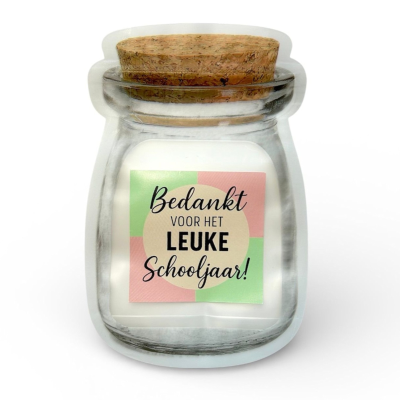 DIY Stazak Bedankt | 2 variantenZoek je een origineel cadeautje voor de juf of meester, maar heb je weinig tijd? Deze stazak is de perfecte oplossing! De zak is al voorzien van een feestelijk label met de tekst "Bedankt voor het leuke schooljaar".